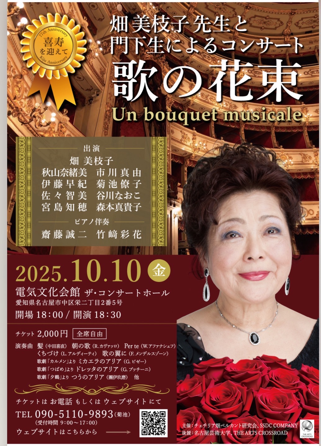 【演奏会のお知らせ】このたび、私の声楽の恩師である畑美枝子先生の喜寿(77歳)のお祝いの演奏会に出演させていただくことになりました。畑先生の長年のご指導と音楽への情熱に感謝を込めて、門下生の皆さまと共に歌声を捧げます。 私自身も日々のレッス... -